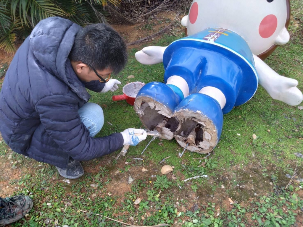 > 桃園客家園區被旅客撞壞 -frp公仔修復